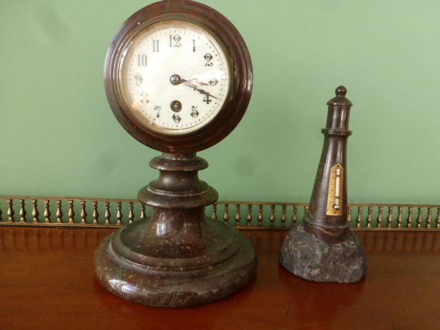Enquire about this A Rouge Marble Desk Timepiece and matching Thermometer