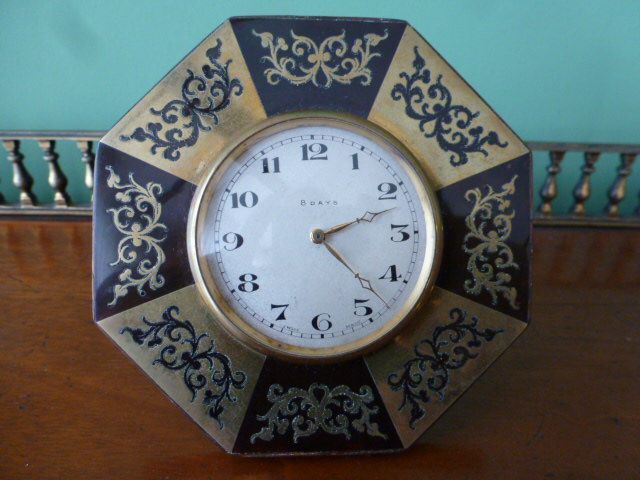 This is an unusual find Brass and Rosewood Strut Clock of hexagonal shape with an 8 day movement, standing 9.5 cm tall